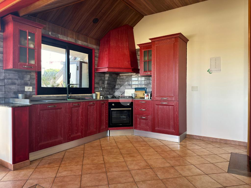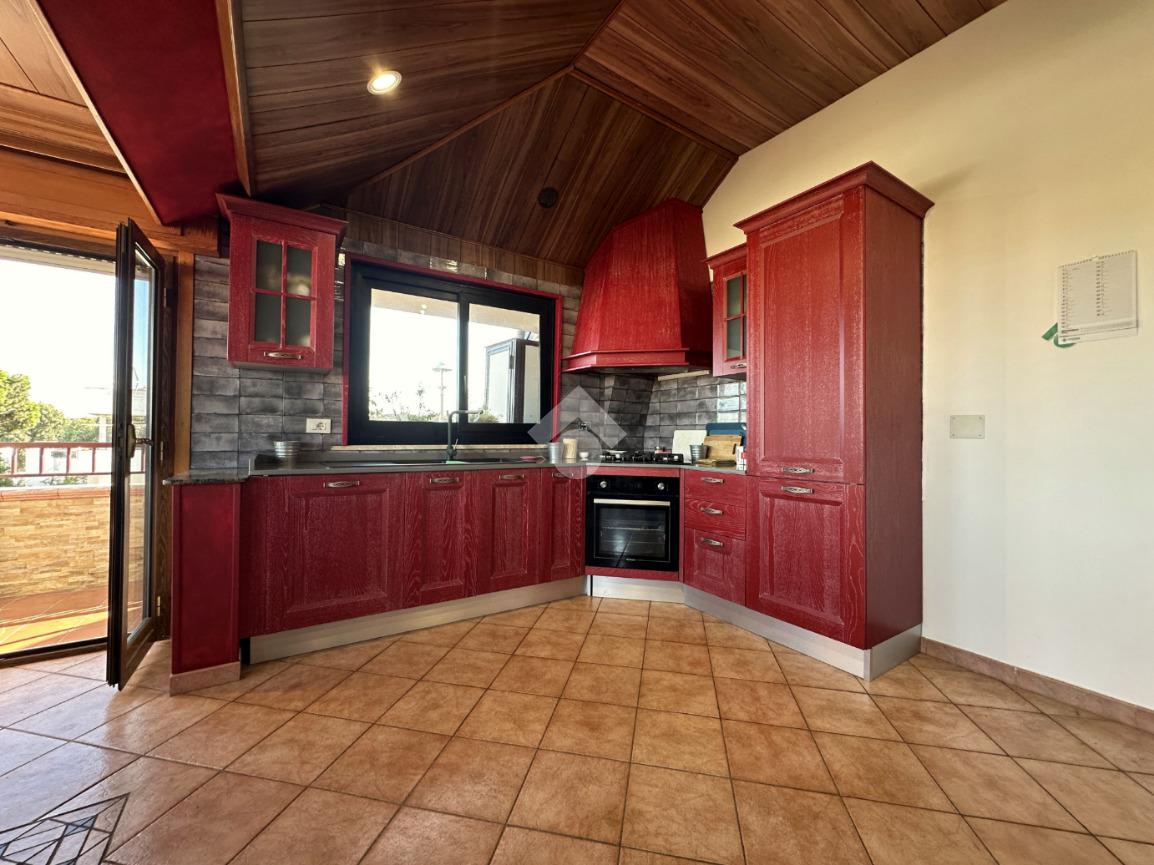 Proseguendo, accediamo alla cucina abitabile di mq che, grazie all’esposizione su tre lati, gode di una notevole quantità di luce naturale e di una piacevole vista mare. La cucina è completata da un comodo camino a legna, ripostigli, e l’accesso a due balconi, entrambi dotati di un punto acqua e uno dei quali dotato di lavatrice coperta.