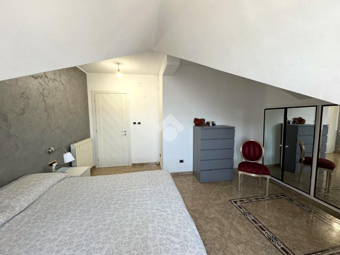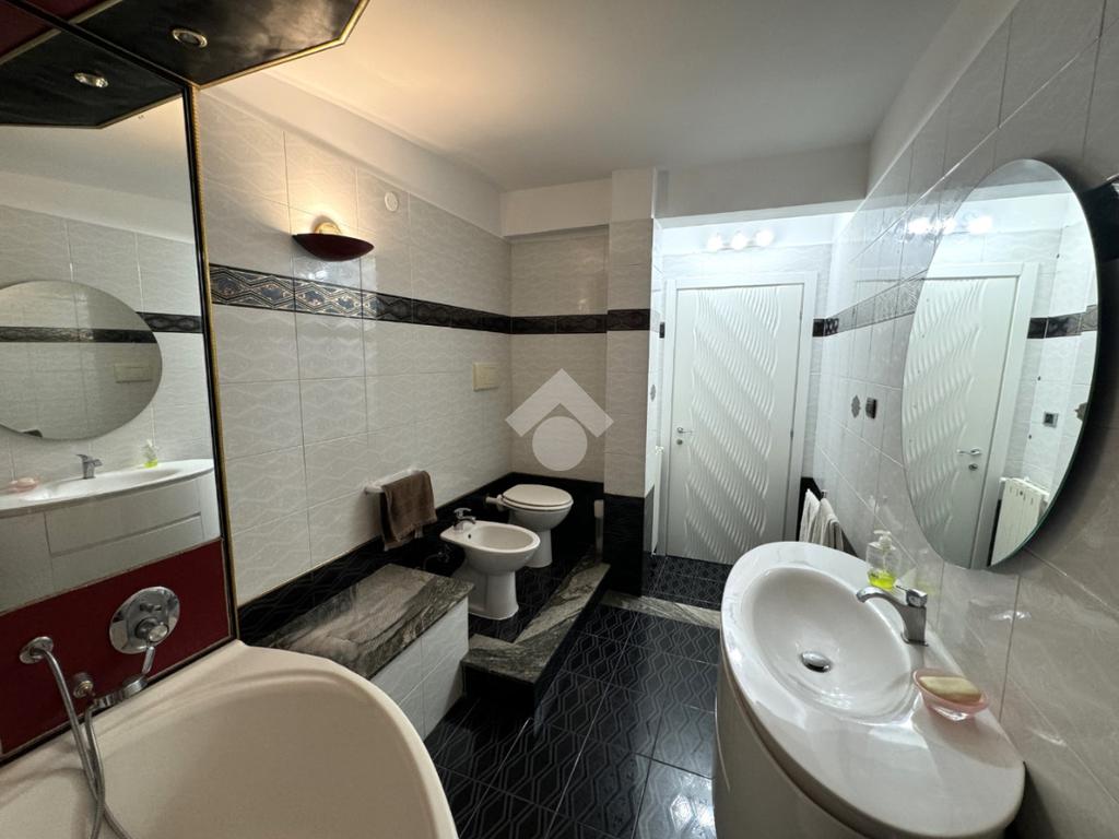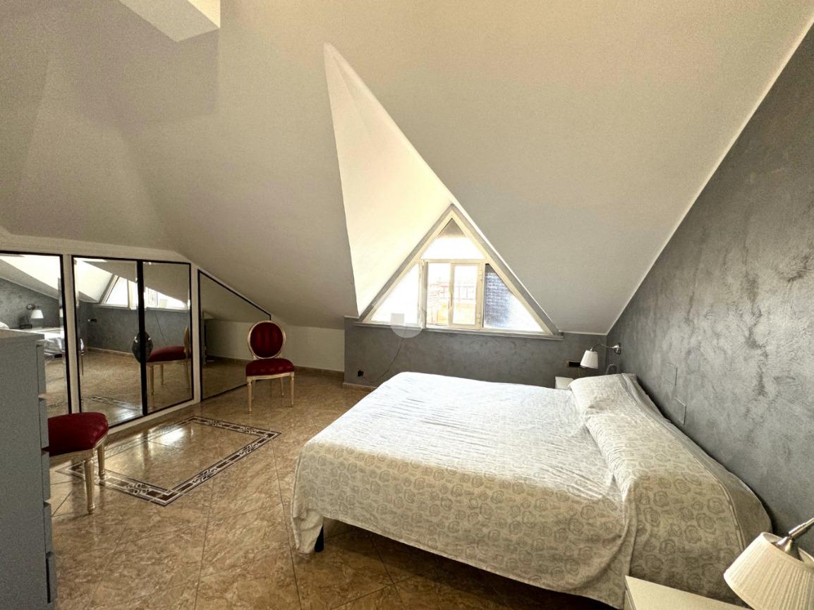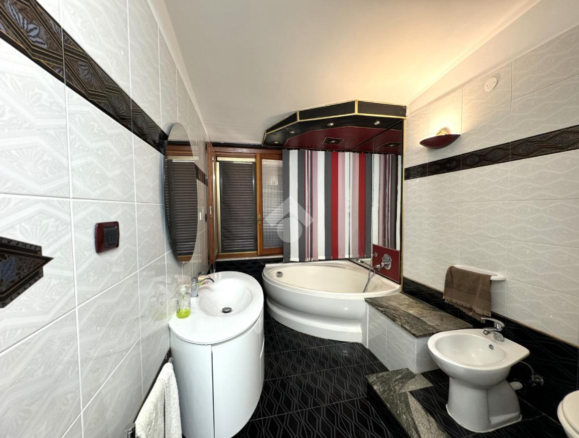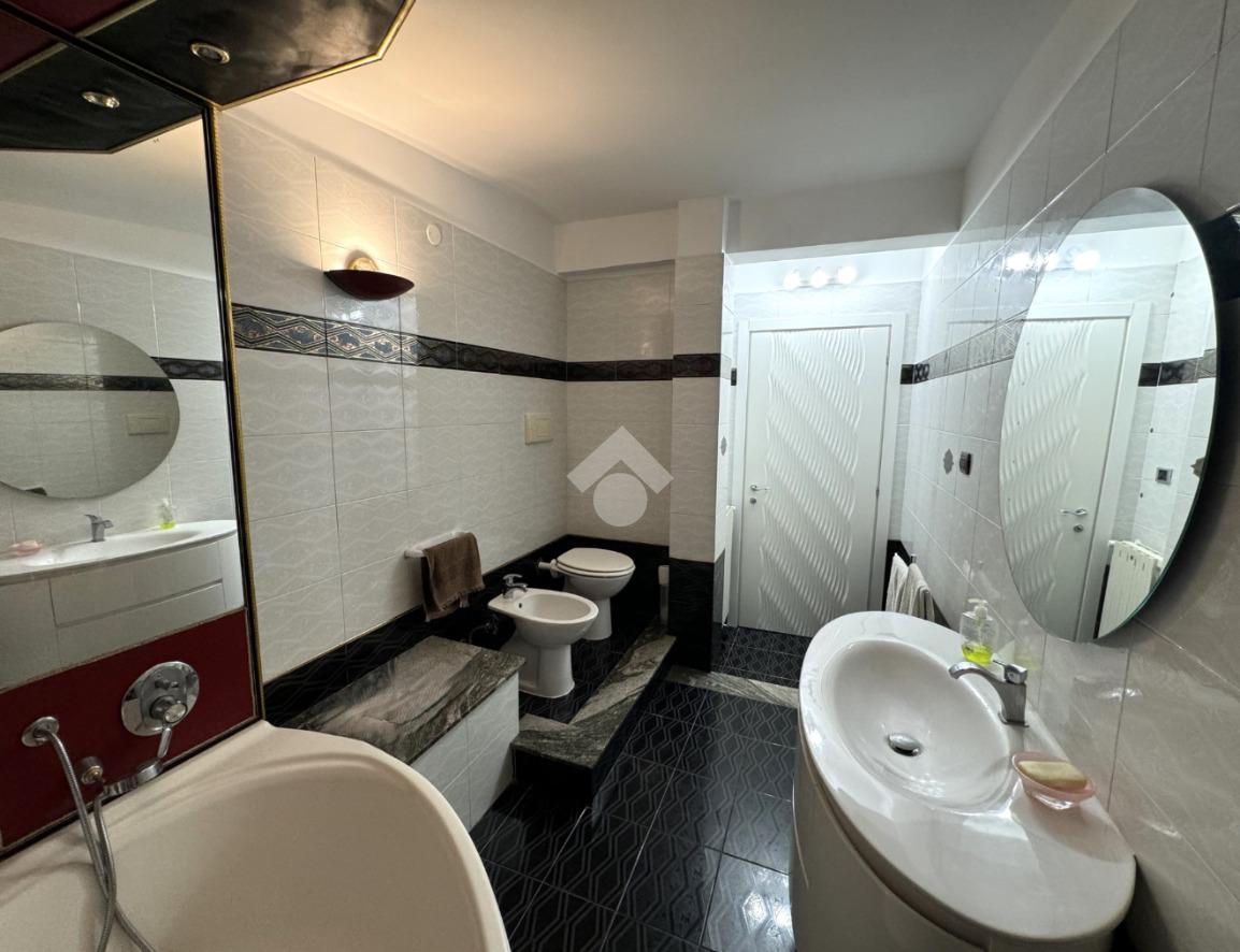 La camera matrimoniale, di 17 mq, con affaccio sul balcone, è servita da un comodo armadio a muro finestrato, che rende l’ambiente funzionale e ordinato. I due bagni, entrambi finestrati, sono uno dotato di vasca e l’altro di doccia.