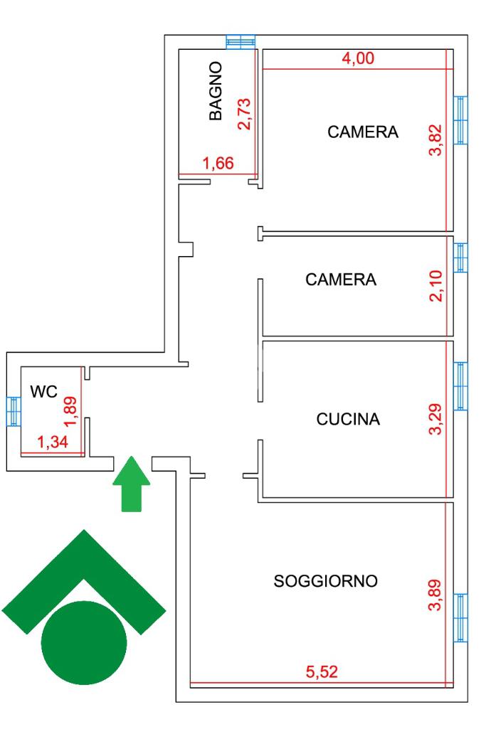 La soluzione è dotata di infissi in alluminio doppio vetro, zanzariere, portone blindato e condizionatore presente in camera. E' allacciata all’impianto idrico - fognario e al gas metano.