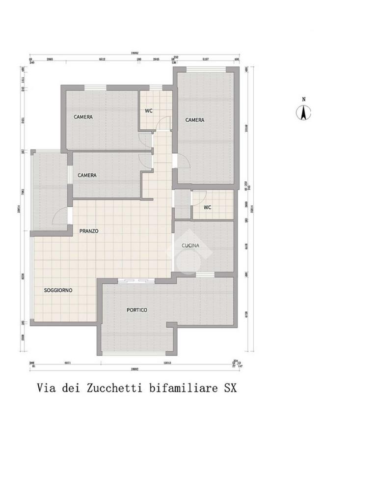 La zona notte comprende tre camere da letto, di cui una predisposta per realizzare una cabina armadio, e un bagno. All’esterno è presente anche una veranda di circa 20 mq, ideale come spazio relax o per pranzi all’aperto.